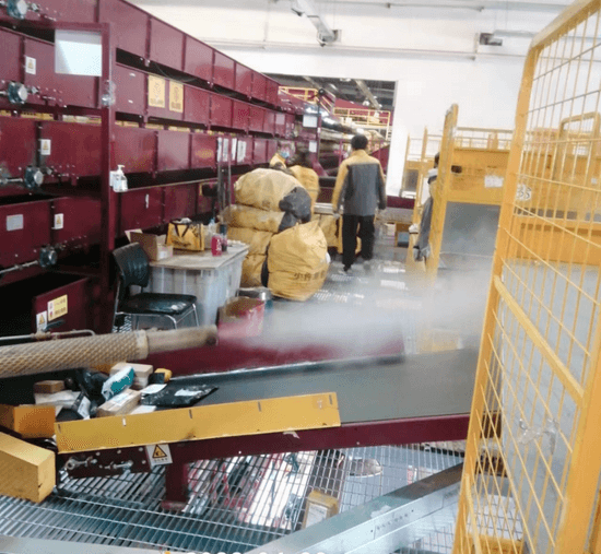 对于外省车辆,全面消杀后,我们车队采取换车头、换司机的方式配进入园区。日常,中心严格落实生产作业场所、各类用具、快件全流程消杀等防控措施,每天4频次准时开展对分拨操作场地、办公区、餐厅、宿舍及卫生间的消杀作业,快件实现从卸车、拆包、分拣、装车等全流程消杀。