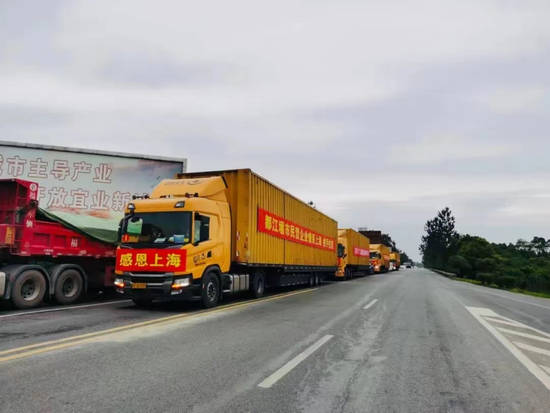 韵达快运配送10余万份、约1200余吨蔬菜及粮油生活物资,为上??挂咭幌咴耸浞酪哒逝?302顶、60余吨,累计发车140余车次,往返行驶里程1万余公里。