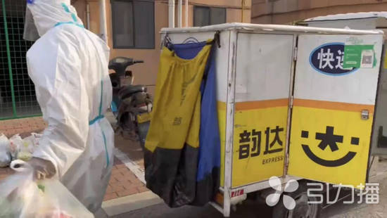 自从泾园二村北小区被封控管控后,韵达快递员已志愿为小区送菜3次,出动车辆48车次。